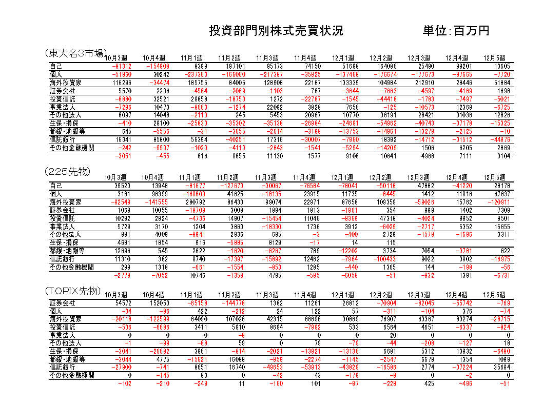 投資部門別株式売買状況-42