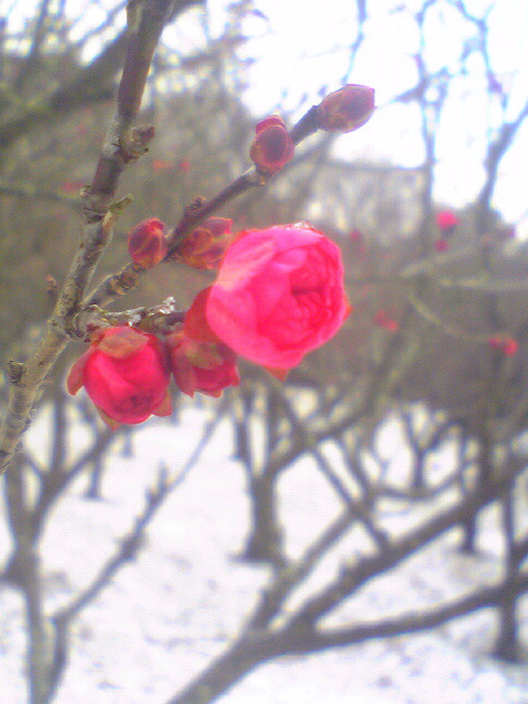 そうですね、紅梅と雪も合いますが、開花が遅れそうです。