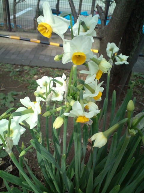 昨日の日記で東京でも梅の花が咲いていることを書きましたが、その近くでスイセンの花も咲いていました。