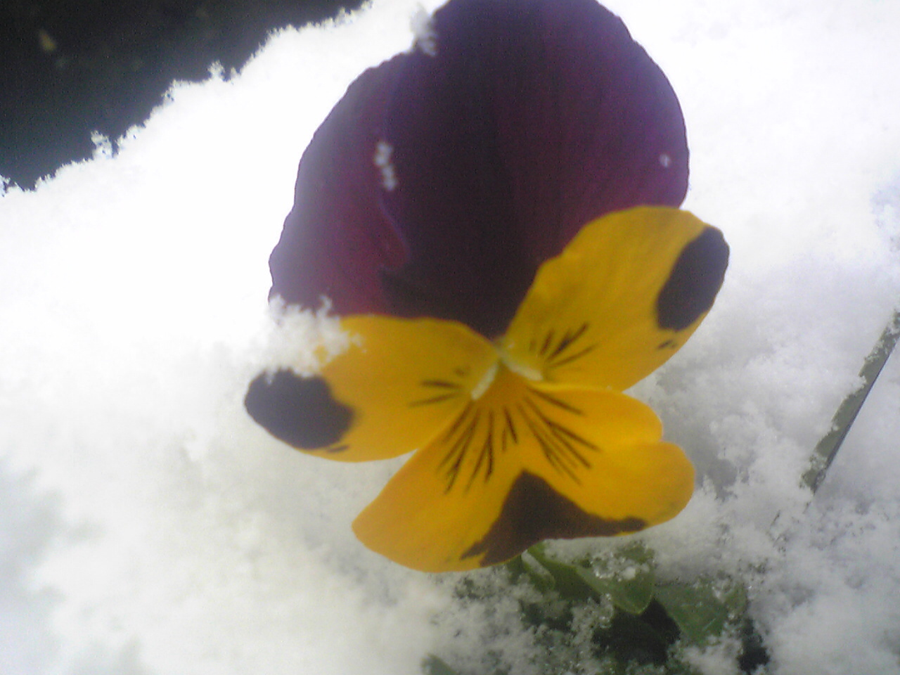雪の中から出ている花です。まだまだ雪が解けません。1ヶ月前は蝶が飛んでいました。