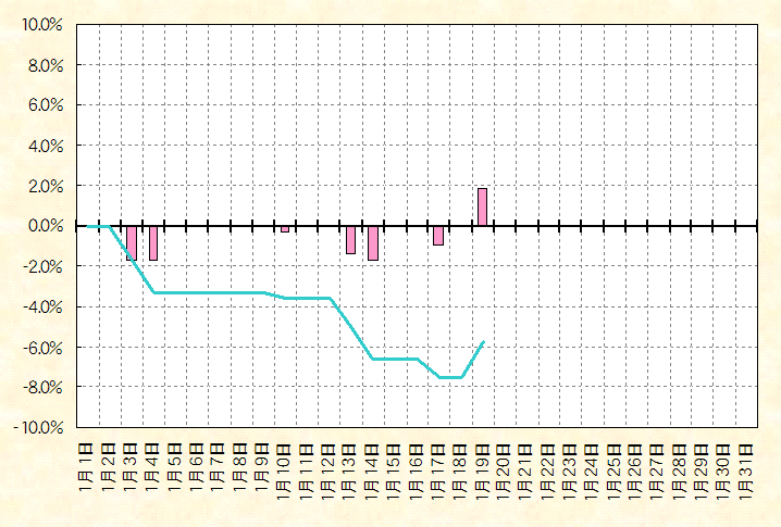 資産グラフを眺めると、今年も月単位でプラスを残すというのは無理そうな感じです。