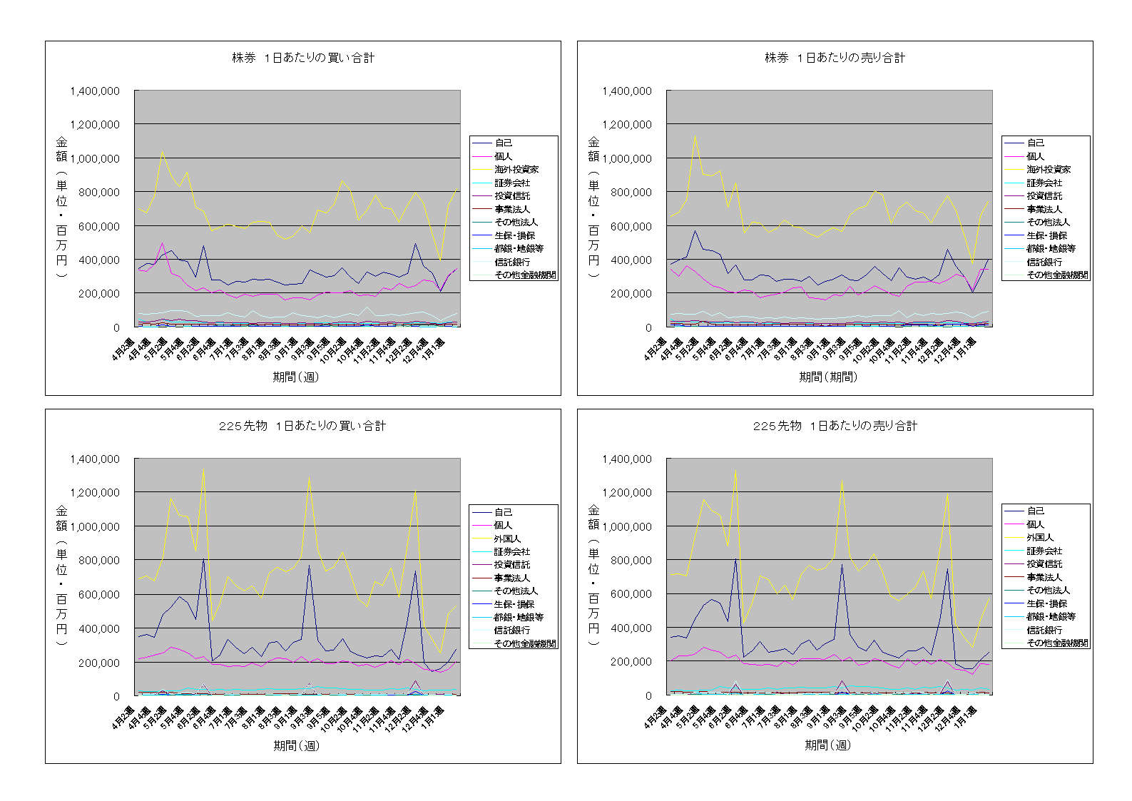 株券に関しては売買金額が良い感じの水準になってきました。先物に関しても水準を戻してきています。