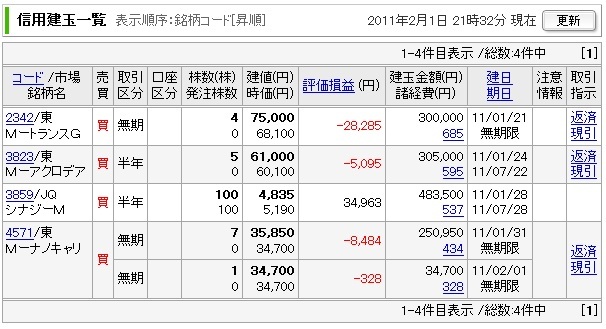 現在の含み損益 : -7,229円