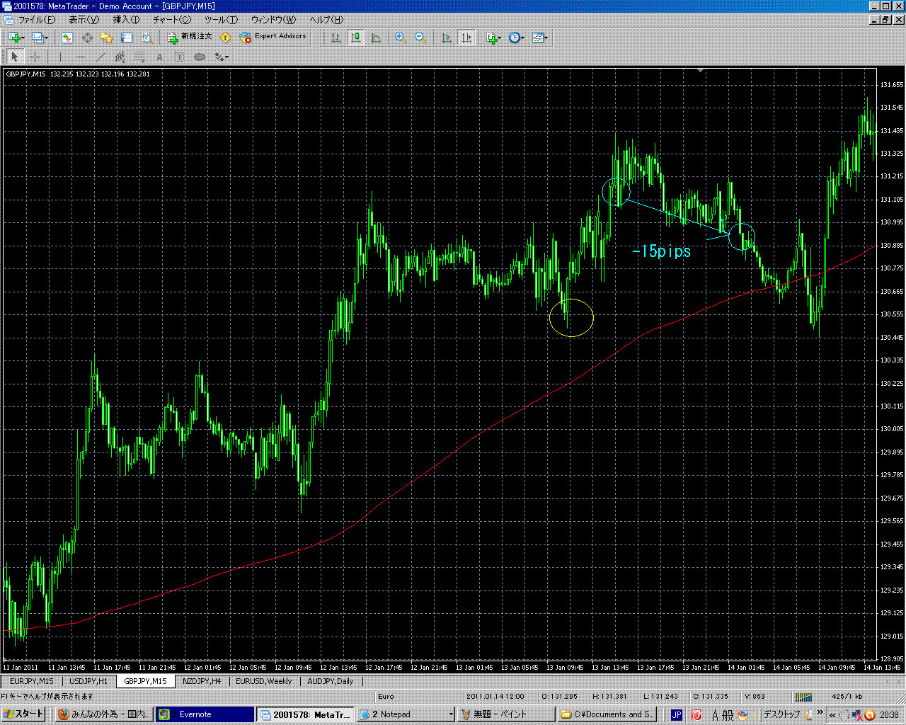 PiPs数 : -15pips