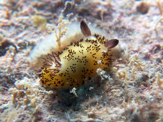 タヌキイロウミウシ、ゴマフビロードウミウシ、ヒラムシの一種。