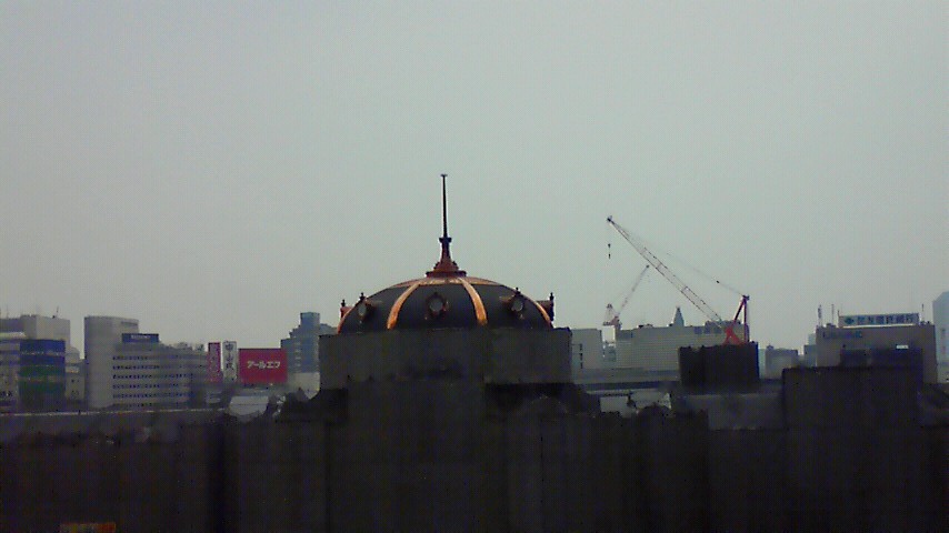 週末東京駅近辺を見ていたら、工事途中の駅舎の頭