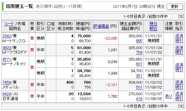 短期取引なので手数料の安い信用取引です。