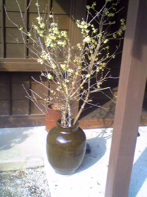 勤務先に付設されている給食センターの玄関脇にもロウバイが