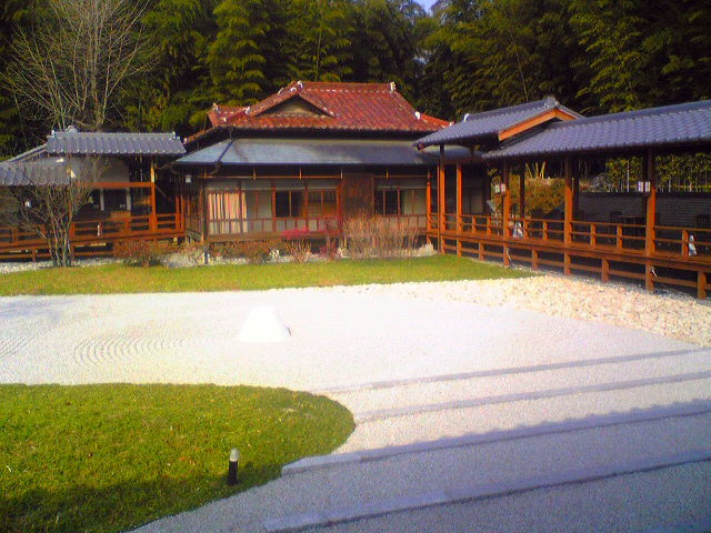 無駄をいっさい省いて苔のみどりと白砂だけに拘りを見せているようで、石さえありませんね。こころが静まりますね。