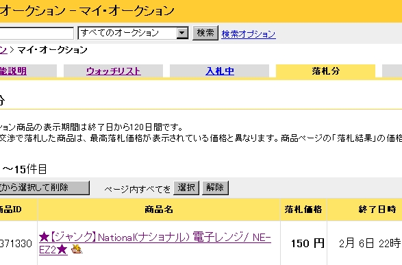 今日は、ヤフオクにて、たった150円でヤフオク落札した電子レンジがとどきました