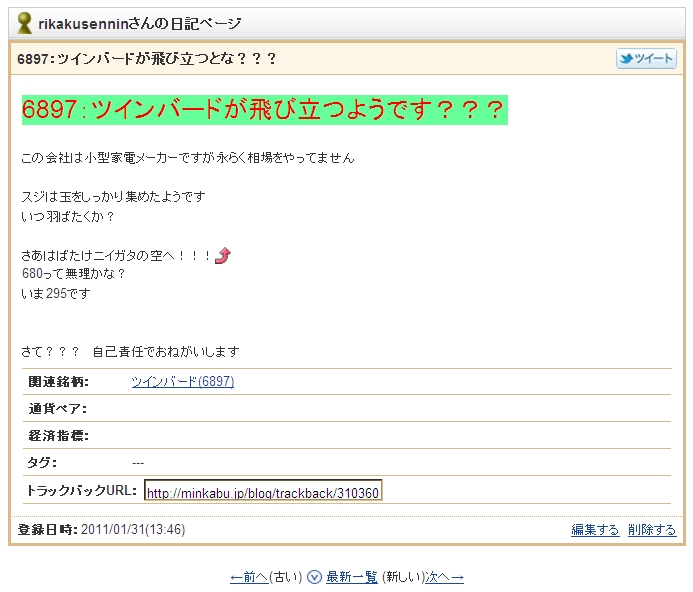 6897:ツインバードが飛び立つようです???