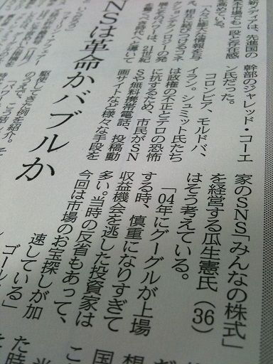 私もその日の朝刊読みました。みんかぶ 参加しなかったときは、早朝日経新聞を1時間かけて読んでいましたが、みんかぶ 参加してからは、みんかぶ の情報のほうがコアなので、日経新聞20分くらいしか読まず、その代わりみんかぶ を30分は必ず覗いています。投資家にとって凄い良い情報源だと思います。日経新聞は感想や、考え方などがあまり書かれていませんが、みんかぶ は相場観やニュースの感想が書かれてあるので、非常に自分の相場観の参考になります。