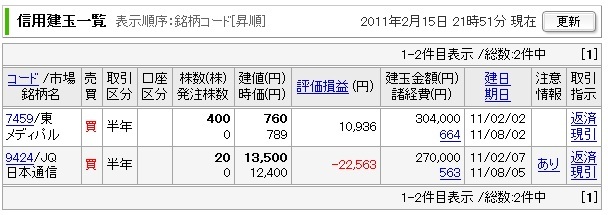 現在の含み損益 : -11,627円