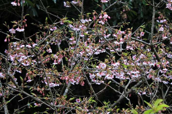 見てみると、避寒桜がほぼ満開状態・・・梅と桜が同時に見れました。^^