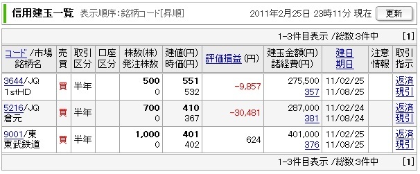 本日の手仕舞い
