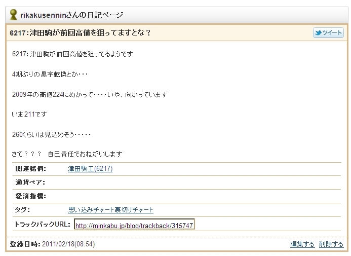 6217:津田駒が買いサインとな???