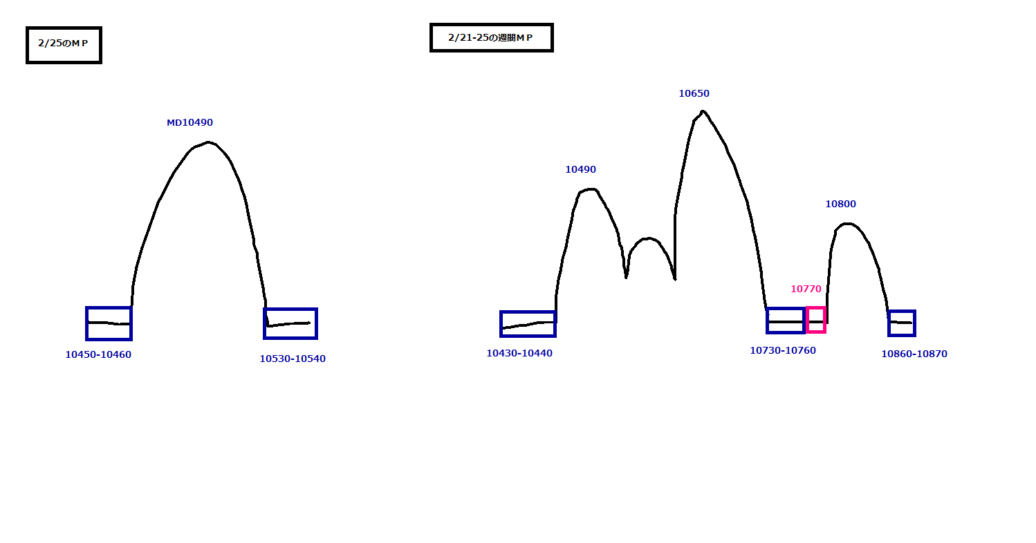 ☆10600あたりで戻り天井つけて再下落、、、の三尊シナリオを描いていたのですが、