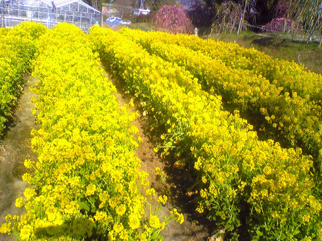 名古屋市天白区平針にある農業センターのしだれ梅まつりも半ばになって、綺麗に咲きそろってきました。ナゴヤコーチンの孵化施設もあり、種の保存に非常に気を使っています。700本といわれる日本最大規模のしだれ梅の植えられた施設がもっとも華やぐ季節です。5分~6分咲きながらも場所によってはこうやって綺麗に咲いています。菜の花畑も綺麗でした。大根や白菜、イチゴ、サツマイモなど野菜や、せんべい、饅頭、ここで取れた牛乳で作ったクッキーやありとあらゆる出店が出てにぎわいます。金曜日でも昼に駐車場に渋滞が。平針駅から歩いてくる人も多いようです。気分のスカットする場所です。