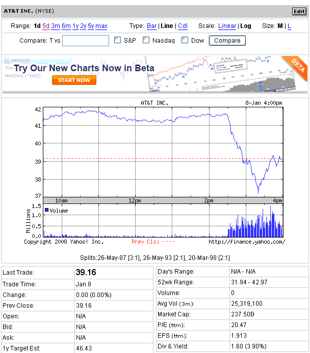 日中の動きを見るとAT&TのCEOの発言の影響が大きかったみたいですが、長期金利や為替はあまり動いていなくて、株価だけ無理やり下げた感じもします。