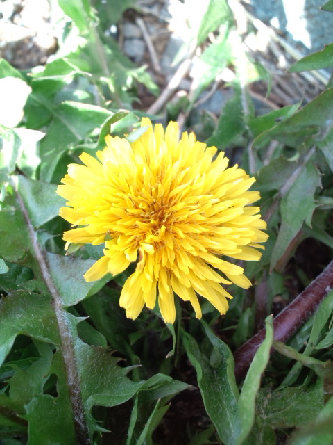 タンポポは茎がまだ伸びていなくて、地面すれすれで咲いていました。