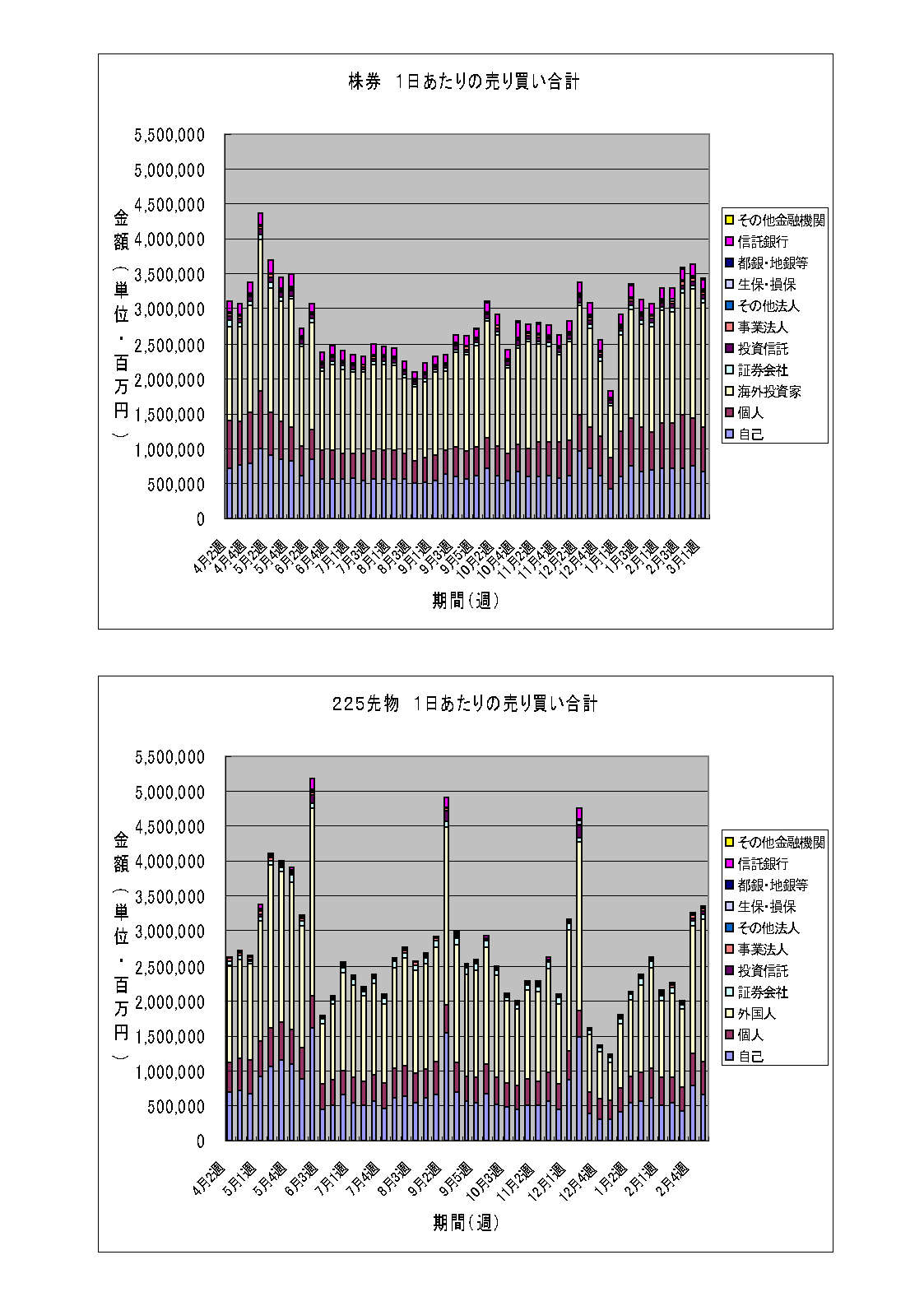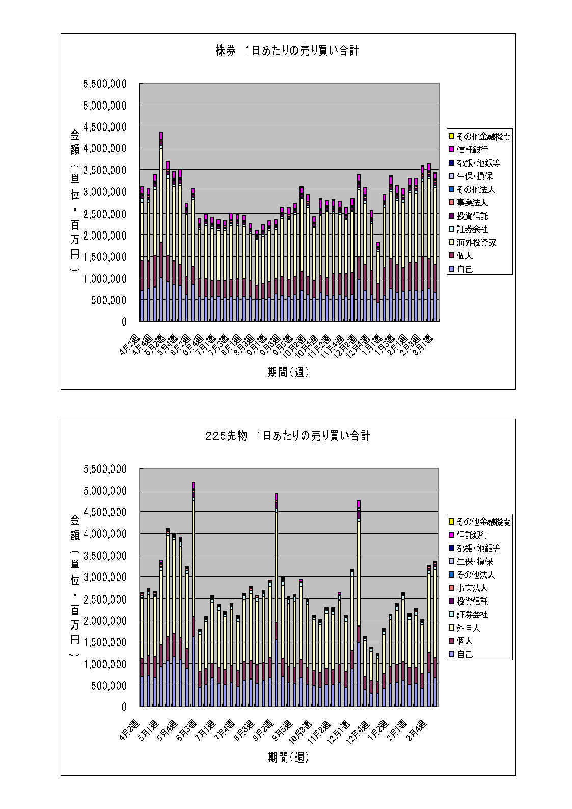 引き続き、株券、先物ともに売買金額は良い水準を維持しています。