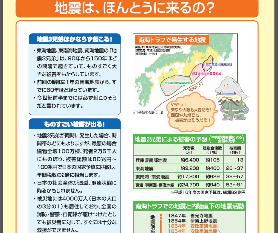 平成16年頃、東海地震が明日にでも起こるかもしれないと新聞で良く書かれていたのを思い出しましたが、特に地元の中日新聞が一面でかなりキッツイ記事を書いていましたね。