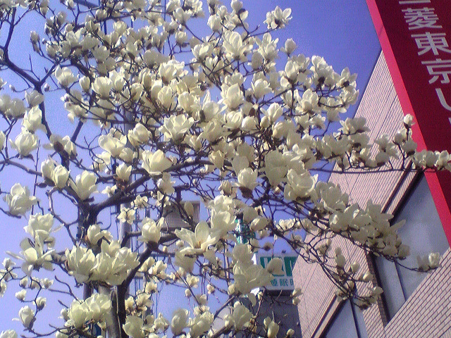 もうハクモクレンが咲いているんですね。