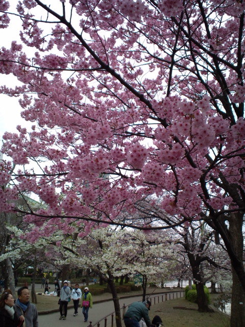 昨日上野公園に行って来ましたが、ソメイヨシノ以外の桜も咲いていて、1枚目の写真のピンク色の濃い桜は、ほぼ満開でした。