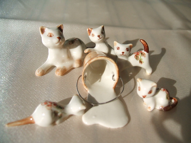 今日の猫ちゃんは海外旅行にせっせと出かけていた新婚の頃(娘が生まれる前、共働きしていた頃)バンコクのオリエンタルホテルの売店で購入した猫ちゃんファミリーです。写真にうまく撮れなかったのですが、背中にエキゾチックな花柄がついています。