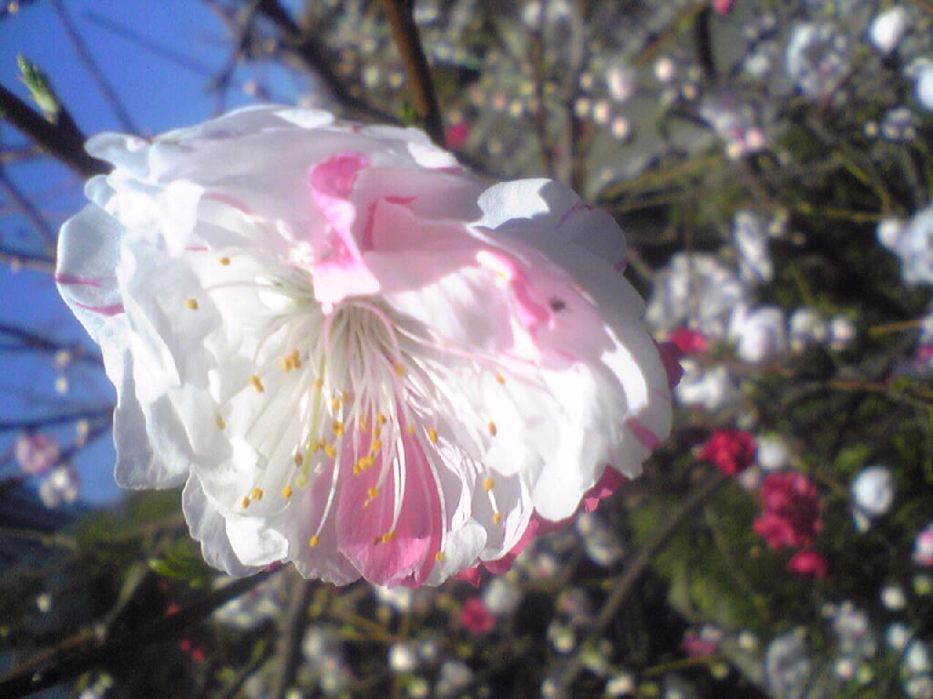 桃にも色々あるようです。1.白と赤~ピンクの混ざる源平桃、2.普通の実もも3.ハナモモ