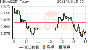 が、心理的なラインとみるなら、9500円は考慮されるべきかも知れない。また、3/30の反騰では下値を50円程度下げてからだったことを加味すると、9500円は下値と想定できるかも知れない。