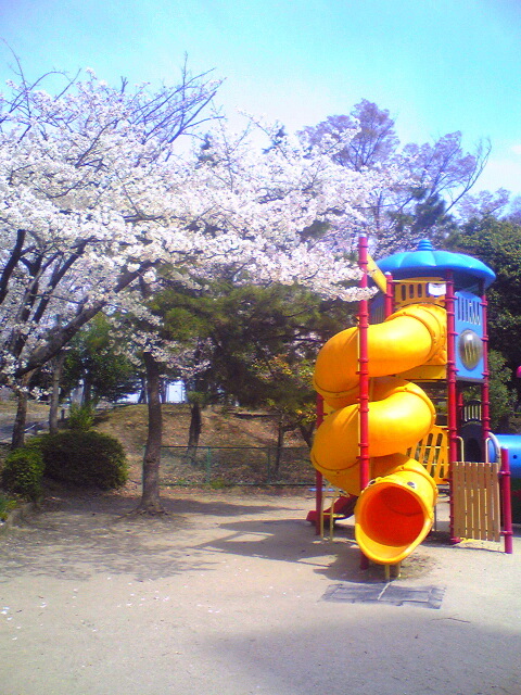熱田神宮公園の中にウナギの滑り台がありました。ひつまぶしの発祥の地です。桜も満開でした。