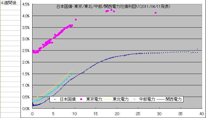日本証券業協会発表の「売買参考統計値」を元にした電力社債利回りをグラフにしました。