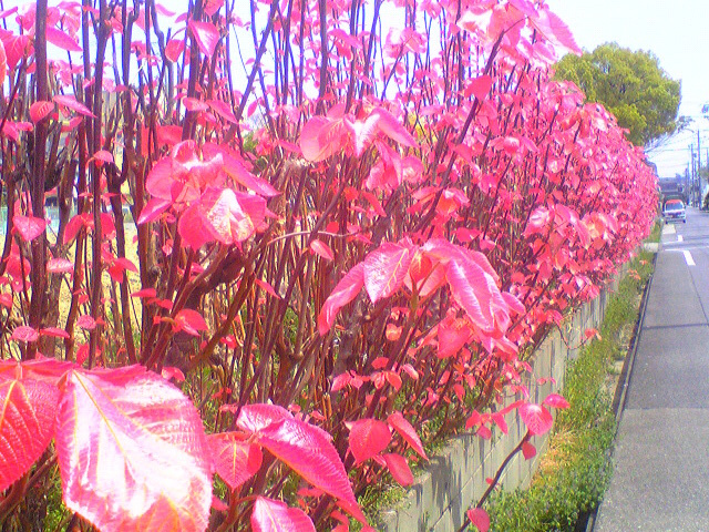 1.ある幼稚園の隣にあるアカメガシワです。調べると、栽培品種は中国産でオオバベニガシワといい、どうもこれのようです。普段見るアカメガシワと違うようです。