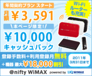 この みんかぶの、 画面の 右側の 上にある 広告で “ @ nifty WiMAX ” が、ず ~~ っと 今月中