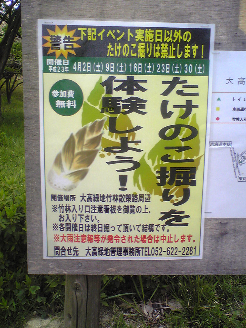 たけのこ堀、明日は解禁、大高緑地