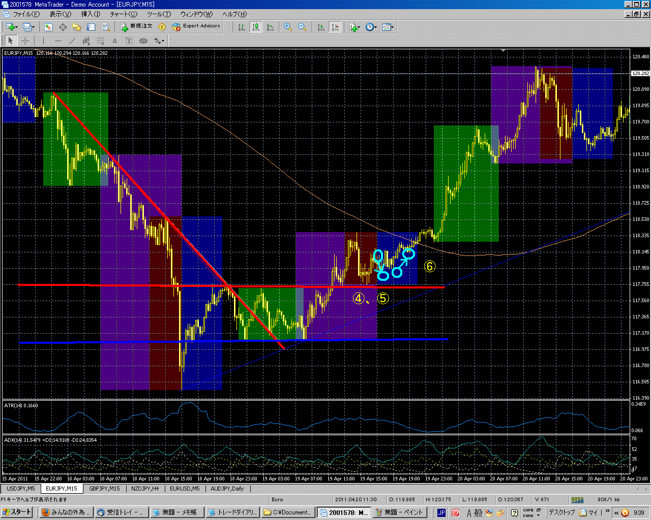 反省点: ⑤と同じトレードをして同じ損切り笑 見送るべきですよね、このトレード。トレード中に値動きに