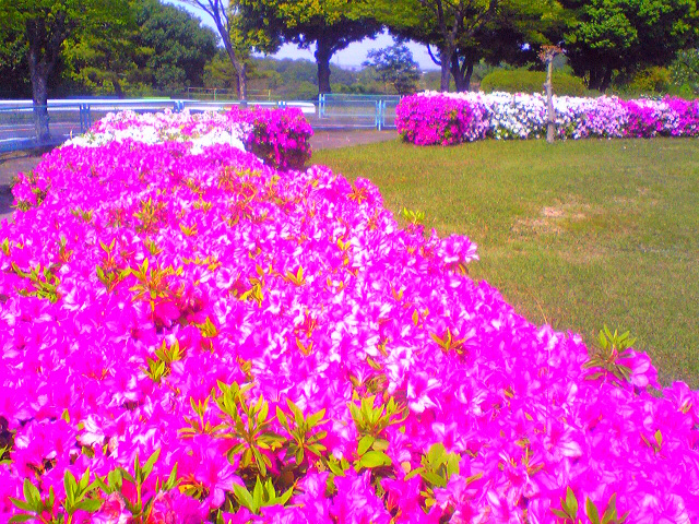 大高緑地のゴーカート場のぞいて見れば、ツツジが満開。あっぱれです。ジャーマンアイリスもモリゾー、ピッコロと一緒に待っています。約4キロの半分はこのツツジで覆われ、ジョギングに最適の時期です。桜公園ではこれからです。