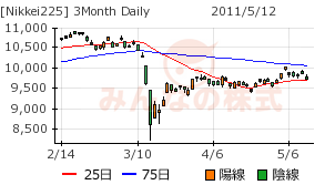 ・・下げるためには9800円台がないという、確認が必要だろう。逆に言えば、9800円台に迫っても25日移動線を勢いよく切り上がらないと、上昇に転じない。チャート的にはそう見える。
