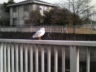 その途中でカモメがとまっていましたので、携帯で写メしました。(ぼけているのは写メのためです。私がよろけていたわけではありません。)