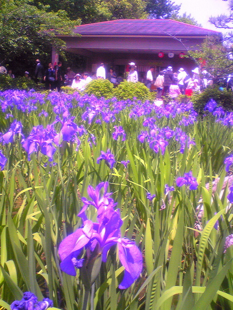 無量寿寺のかきつばたも今年一番の見ごろになって来て、すごい人でした。去年の熱波でかなりのかきつばたが枯れていますが、メインの舞台では綺麗に咲いています。最近この畑の前に在原業平の銅像と句碑が立っています。お抹茶とお茶も2箇所に分かれて振舞われ、すごい人でした。境内を中心にした16カ所の池の3万本で一番花が咲きそろいすごい感動でした。