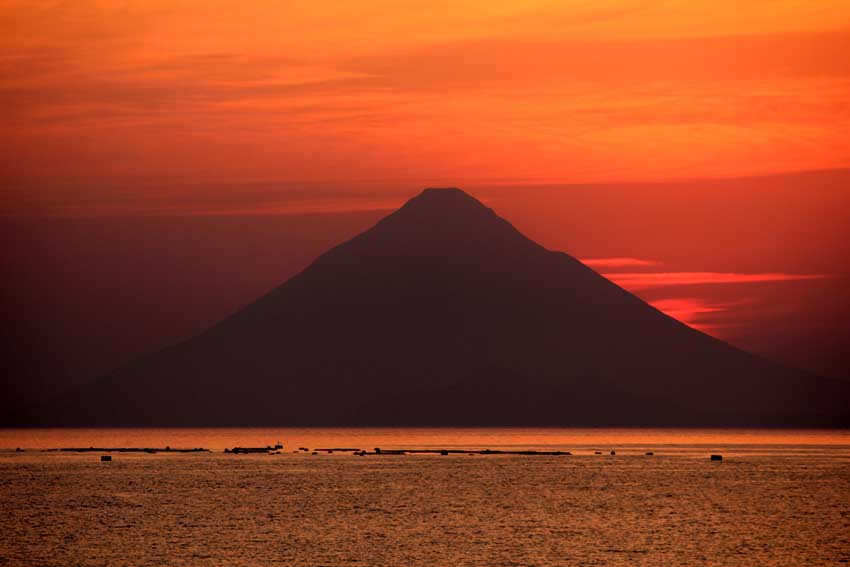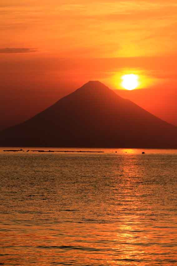 山は薩摩富士とも呼ばれる「開聞岳」です。