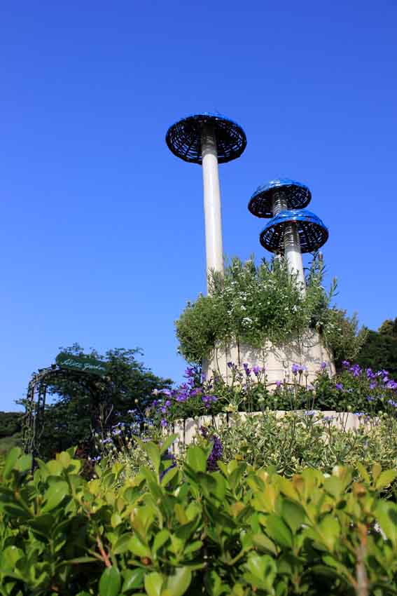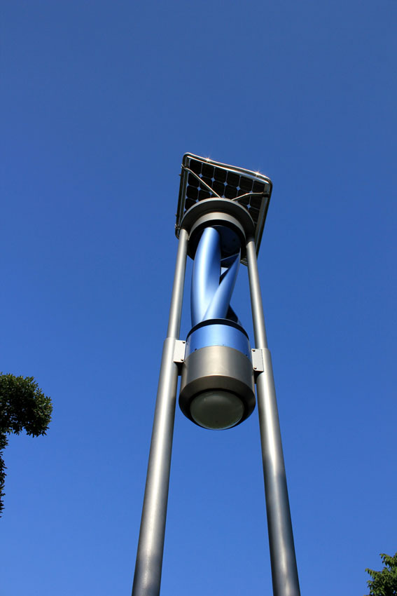 公園などには、風力と太陽光をドッキングさせた小規模発電が・・・