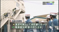 東京電力福島第一原子力発電所の事故を受けて、柏崎刈羽原発では緊急時に消防ポンプ車を使って