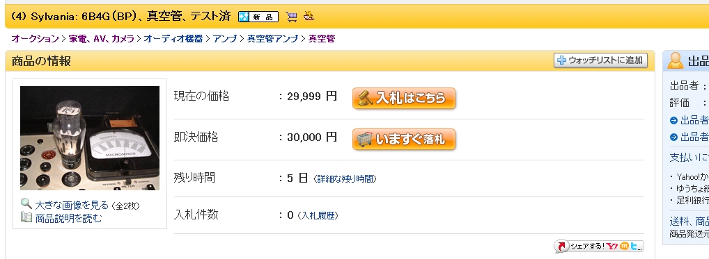 この29999円という値付けに興味がありましたが、この出品者は全商品を1円安い価格で開始価格設定してますね^^;