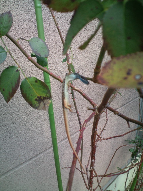 まるでトカゲの干物を作っているかのように、バラの木のとげに刺さってぶら下がっていました。
