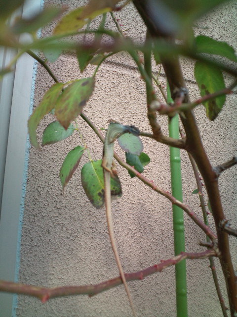 庭でバラの木を見ていたら、何かがぶら下がっているのが見えました。