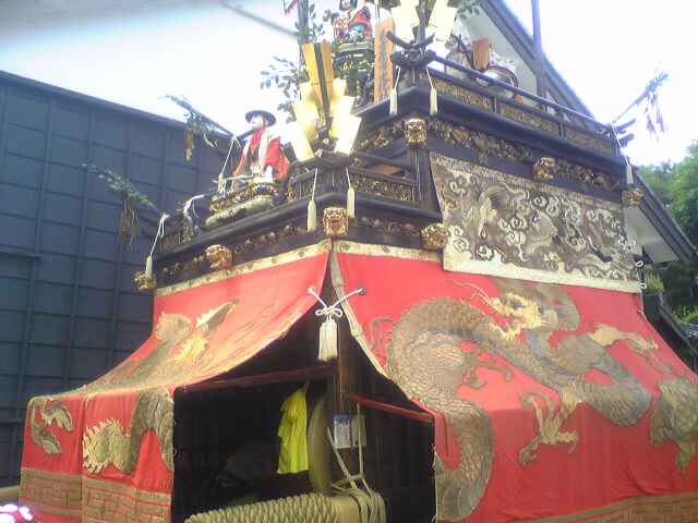 水引幕・大幕ともに豪華な刺繍で彩られています。文字書きのからくり人形がのっています