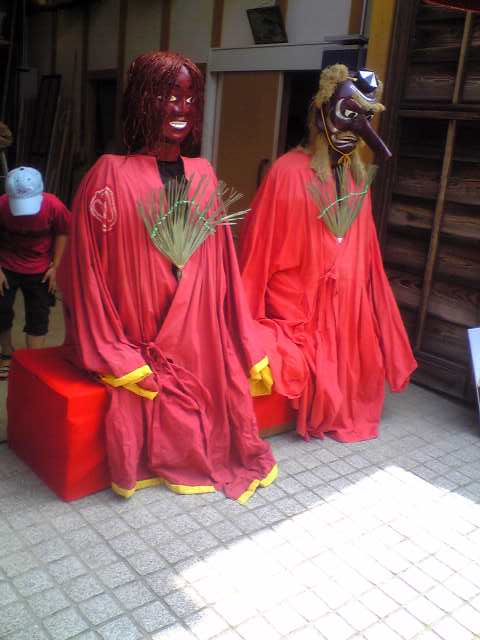 有松絞り祭りでは山車も少し動かして、からくりも動きました。3台の山車が出たのですが、名古屋には大小100台の山車があるそうで、一号線沿いは各町にも一台づつあるとこが多いです。ここには17世紀からある山車もあり、猩猩もいてお尻を叩いて厄除けにするようです。10月第一日曜日には引き回しをします。猩猩はこのほか色々な祭りに借り出され、人気者です。