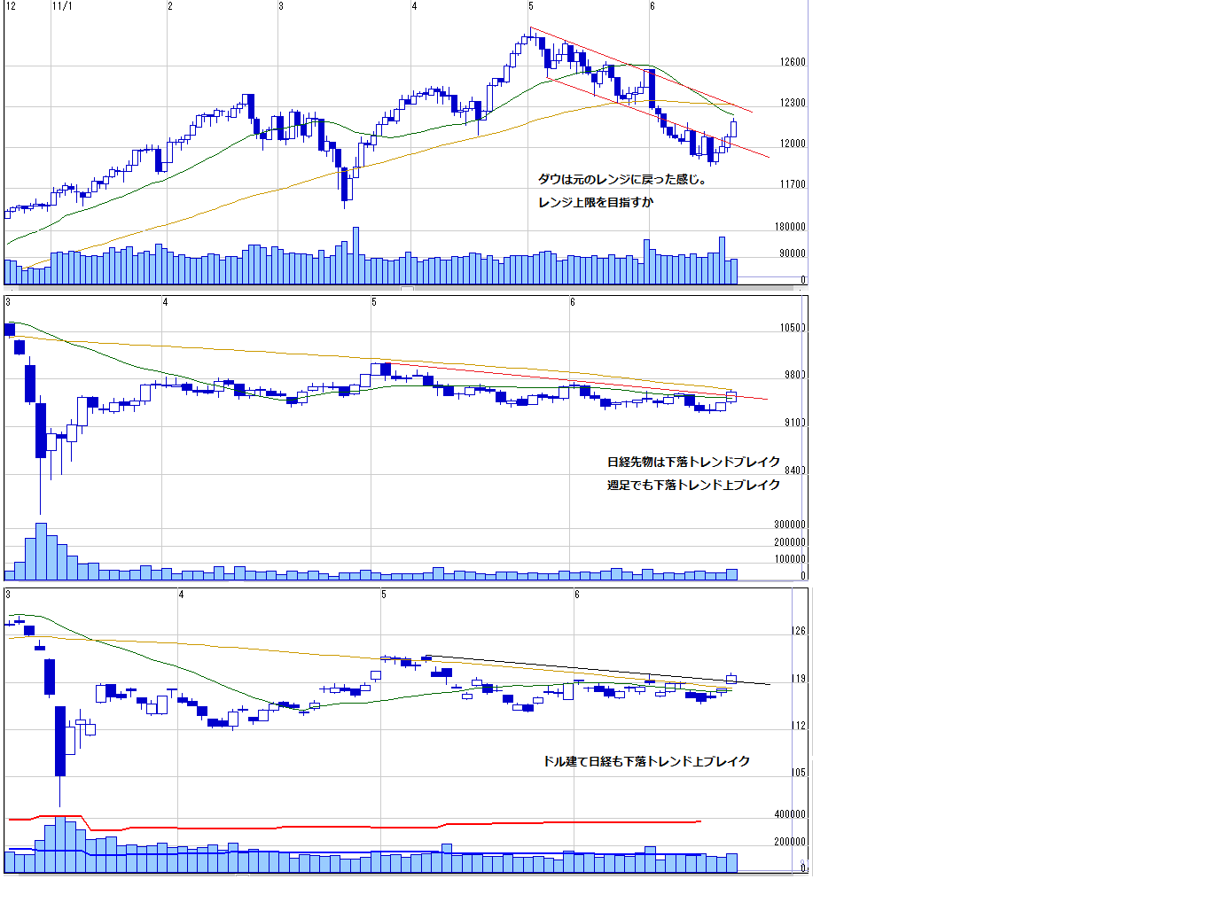 とりあえず、週足でみても下落トレンドを↑ブレイクしたので、